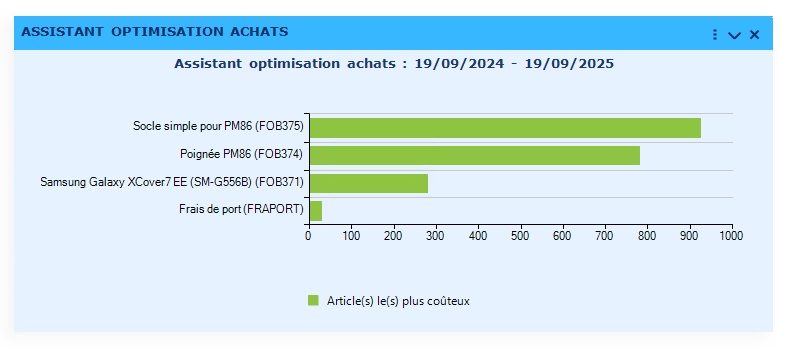 Avec le nouveau portlet d'optimisation "Assistant optimisation achat", vous visualisez les plus fortes dépenses probables à venir par article, afin de les anticiper et les négocier.