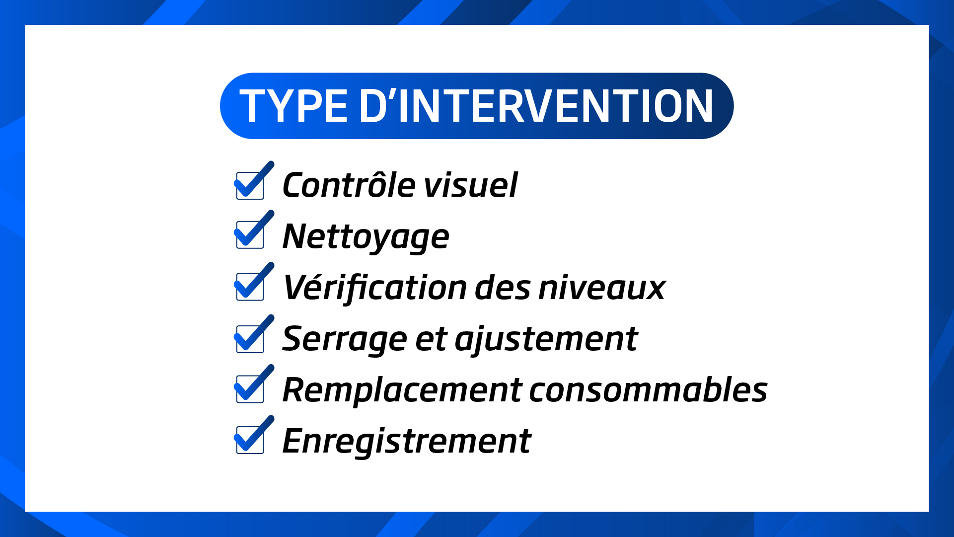 La maintenance de niveau 1 se décline en quatre catégories d’actions :